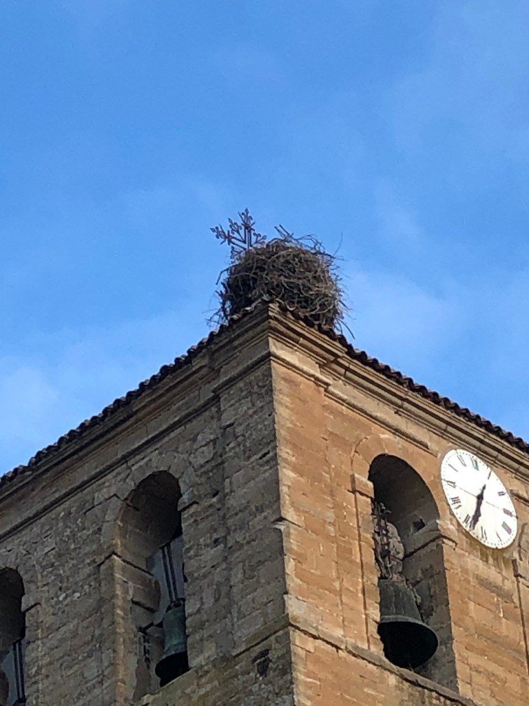 Thursday, September 9, 2021: Tardejos has a population of about 850. The town’s church had a giant size stork nest on top. The stork took off flying over the buildings.