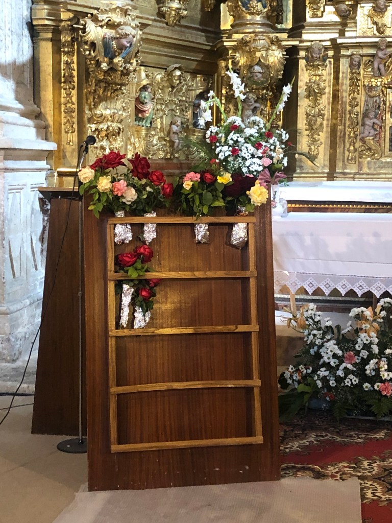 As we strolled through the art exhibit at Santa Maria del Manzano we heard a small choir preparing for a mass service. The locals were starting to arrive and many brought a handful of flowers probably from their gardens. They had a special wooden rack for holding the flowers. Very nice way for the parishioners to contribute to the service.