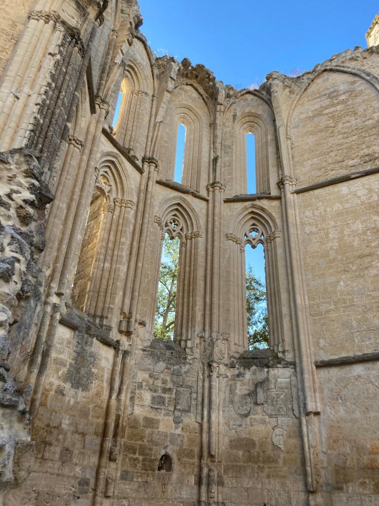 When walking through the ruins, you see little alcoves filled with big drippy candles and many slips of paper with hand-written prayer intentions. In the Middle Ages, these alcoves were where nuns left food for the poor. Now, three sheds have been set up to receive, stay and dine in with another as a bedroom with six bunk beds donated by the Spanish army and another shed that serves as a restroom.