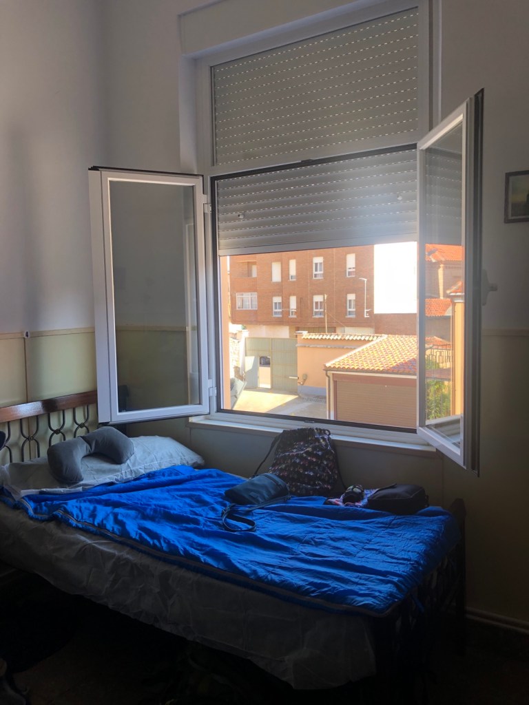 The nuns don’t do bunk beds. They would pop in frequently to check on things. Lights out at 10:00 pm and they made sure of that. A couple of nuns came up to turn the lights off personally. In the morning, everyone is eager to start walking. Some people get up as early as 4:00 am. Everyone has to be out by 8:00 am.