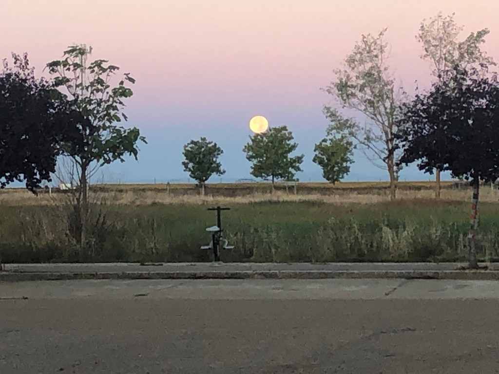 We were packed up and leaving El Burgo Renaro around 8:00 am and the moon was just rising. What a beautiful sky and it was the perfect view from all of the public exercise equipment.