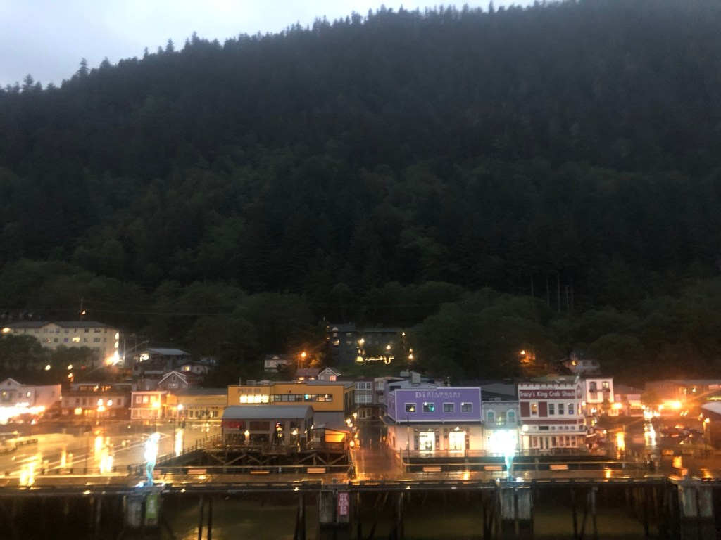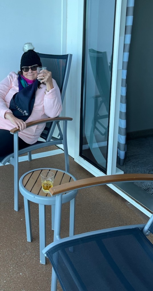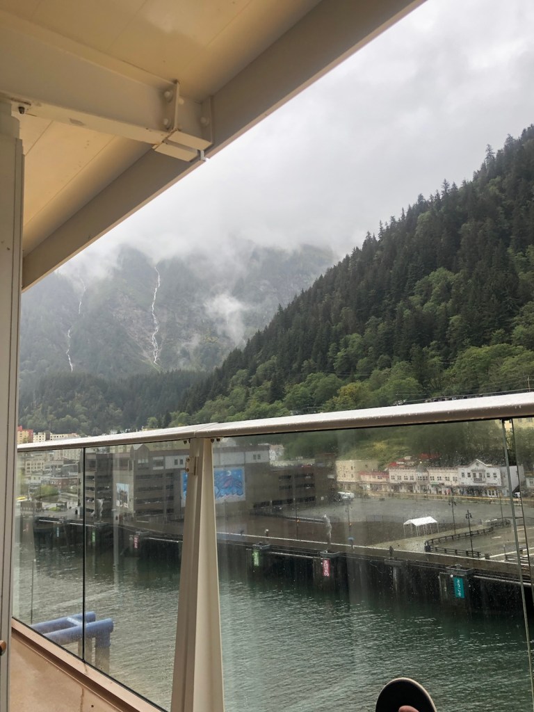 The view of Juneau was stunning with the balcony door shut. Open the door and say hello to winter weather. It was cold and damp. Dark clouds and a good breeze were sure to be followed with rain.