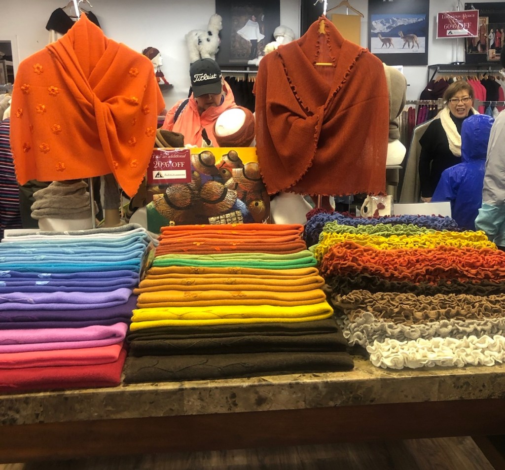 It was a short walk to the main streets of Juneau and like everyone else, we ducked into the first retail option we could find. It was a very warm and welcoming woolen goods store.