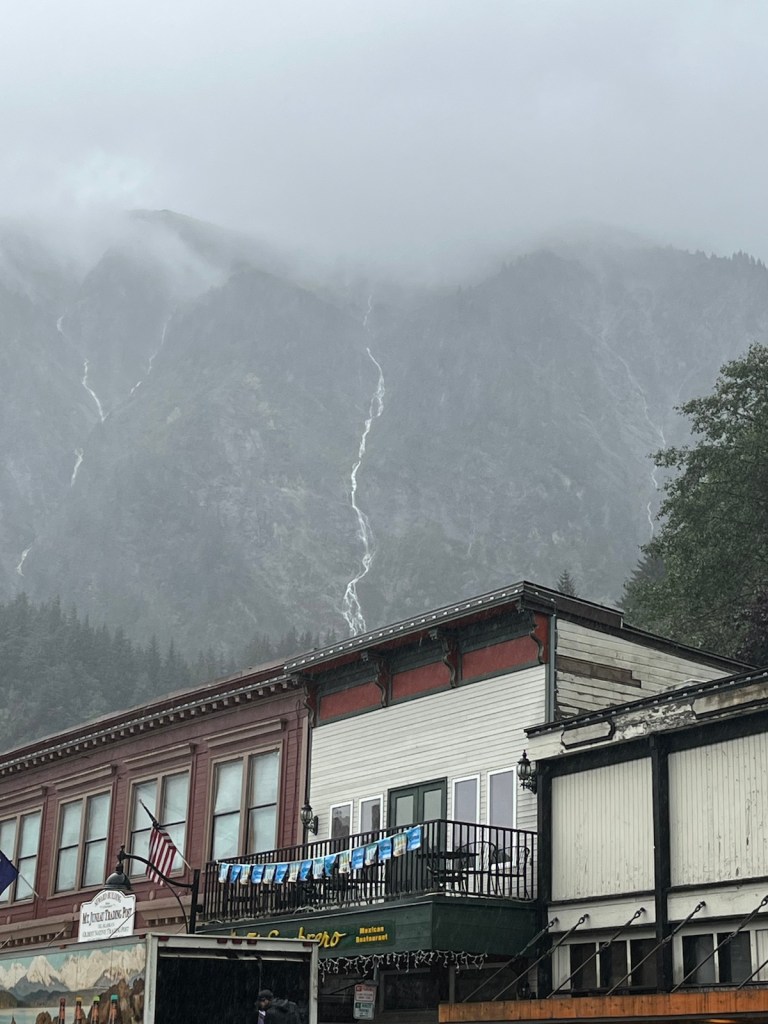 No matter where we walked, we were overshadowed and overwhelmed by the mountains. They were hard to see with the sinking clouds and fog that was setting in as it started to rain harder.