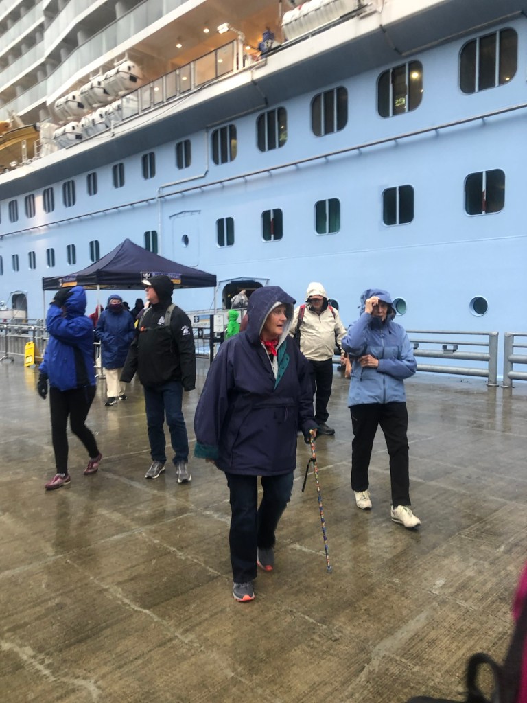 There was the usual activity at the gangway but this time passengers were turning around and retreating until the weather improved … it’s a short window today, the ship was departing at 3:00 pm.