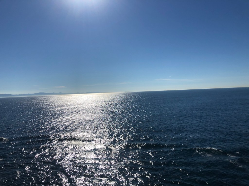 Back at sea, the weather had calmed down and looks nice. Step through that balcony door and it’s a different story.