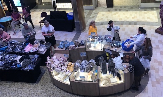 Back inside … most days the shopping floor features many bargains … winter wear, jackets, caps, watches, bags, perfume, jewelry and more. There’s usually a feeding frenzy of shoppers gathering round the counters especially early in the day.