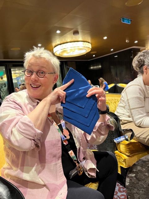Onward! Theresa and I went to the “Napkin Folding” session. It was fun and creative. Crazy to see how many people showed up to fold napkins.