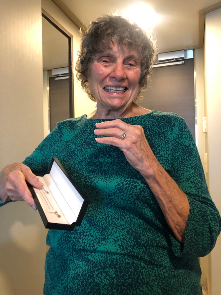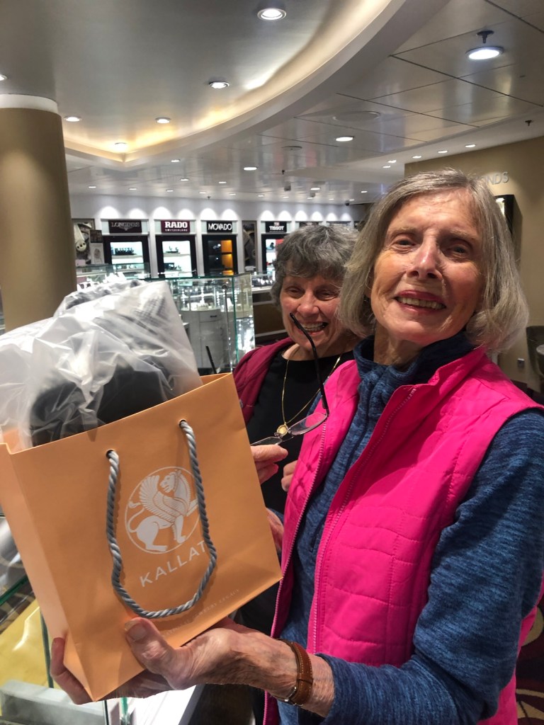 Earlier in the week we pulled Sue into the jewelry store at the last minute to enter a drawing where you had to identify three stones … and she won — Sally had provided all the correct answers for all of us. That’s teamwork.