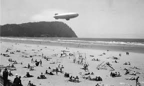 Early on, it was a place for tourists to experience the coast. Seaside had many crazy events but one stands out the most … six months after Pearl Harbor, the town of Seaside witnessed the shelling of Fort Stevens by a Japanese submarine. While there was no significant damage from the shelling, uneasiness settled over the town. Blackout rules became strictly enforced and air raid drills were held. In 1943, it was common for Seaside residents to see blimps flying over the beach, as there was a station in Tillamook to monitor the shore and search for subs. (Information from Seaside Visitors Bureau.)