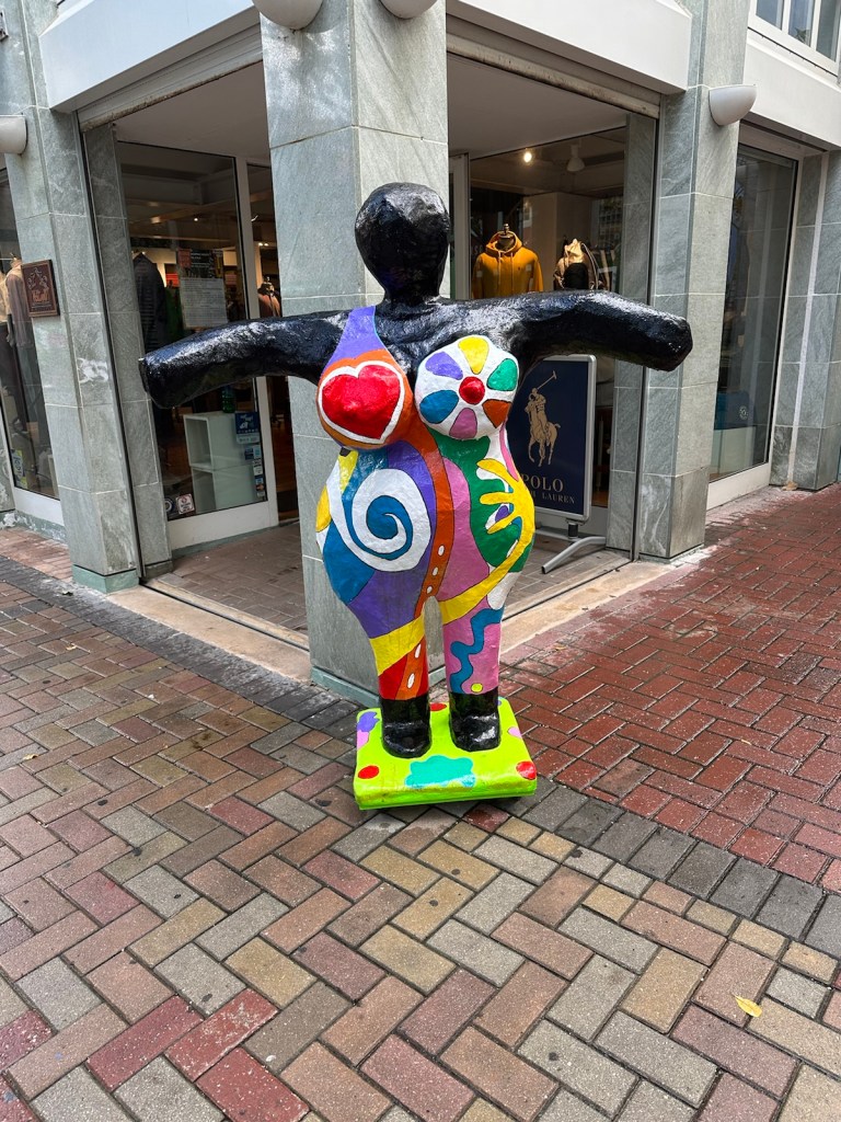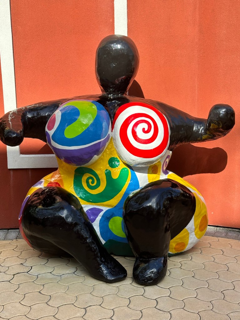 Curacao is home of the ChiChi, a well rounded Caribbean figure. She represents the vibrant, dynamic and responsible older sister. The statues are handmade and painted in bright Caribbean colors by local craftsmen and painters at Serena’s Art Factory.