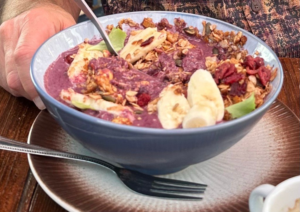 David started the day with something called the Açaí bowl. It was purple, cold and thick like ice cream. It contained fresh fruit, oatmeal milk, granola nuts and dried fruit. Very refreshing in this hot and humid weather.