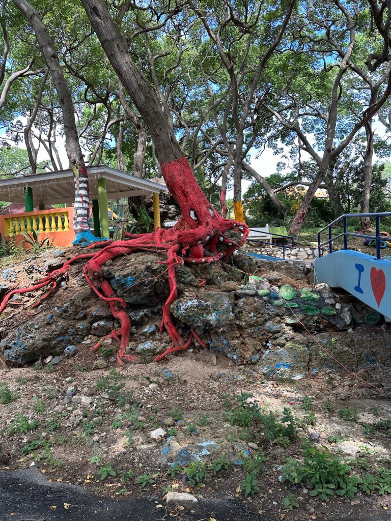 Westpunt remained isolated for most of its history due to the 22 miles to Willemstad. There is public bus service around the island. The bus stops are plentiful and most are decorated for the holidays.