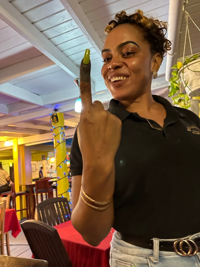 Our waitress Shyrainne very proudly showed us her finger dipped in ink to show that she had voted today. Her hope is that they make the retirement age 60 so it will open up jobs for the youth.