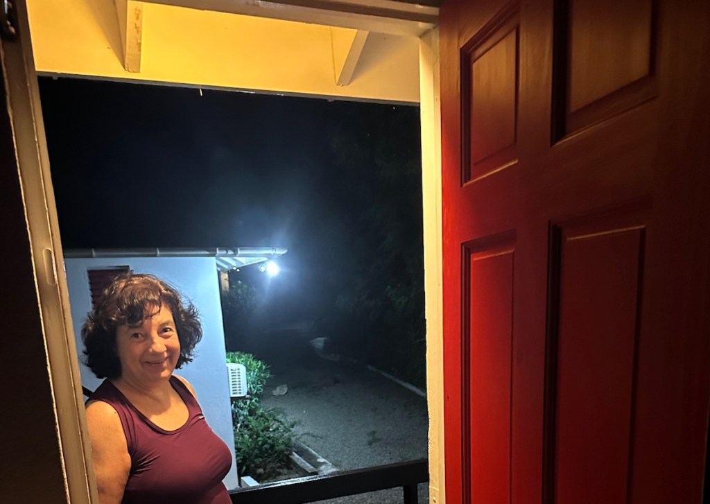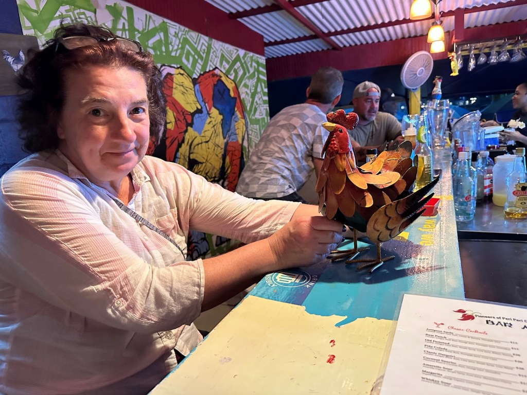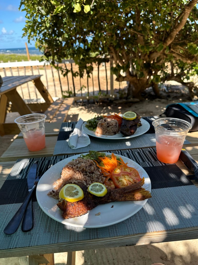 We arrived back in Falmouth around 9:00 pm. Being famished we found a nice but busy outdoor restaurant and felt fortunate to get seats at the bar since we didn’t have a reservation. We placed our order and shortly after our drinks arrived, the power went out. Everyone got out cell phones lights and continued eating and drinking. The cooks continued grilling using their cell phones for light.