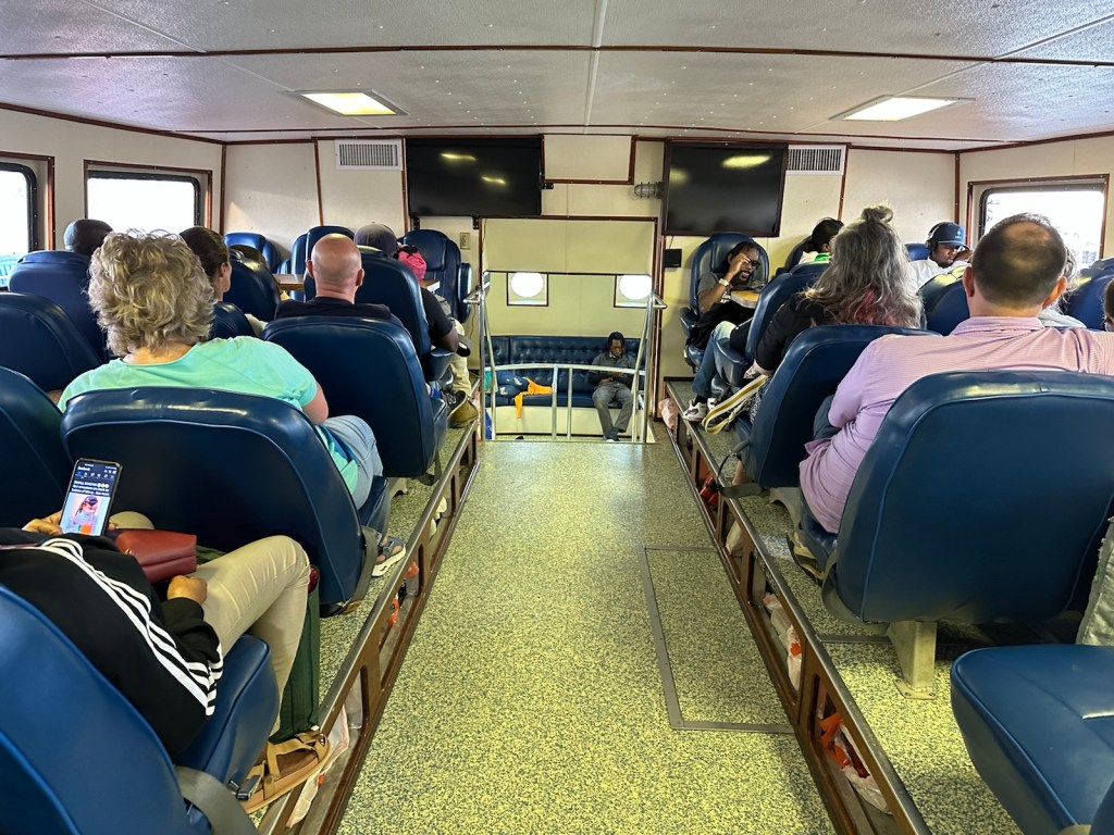 The air-conditioned inside cabin of the ferry boat had very comfortable seating.