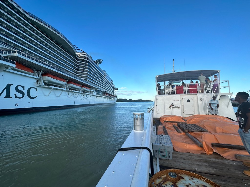 We were directed to be at the dock around 6:30 am. Our ferry departure was delayed by an hour because a cruise ship was docking.