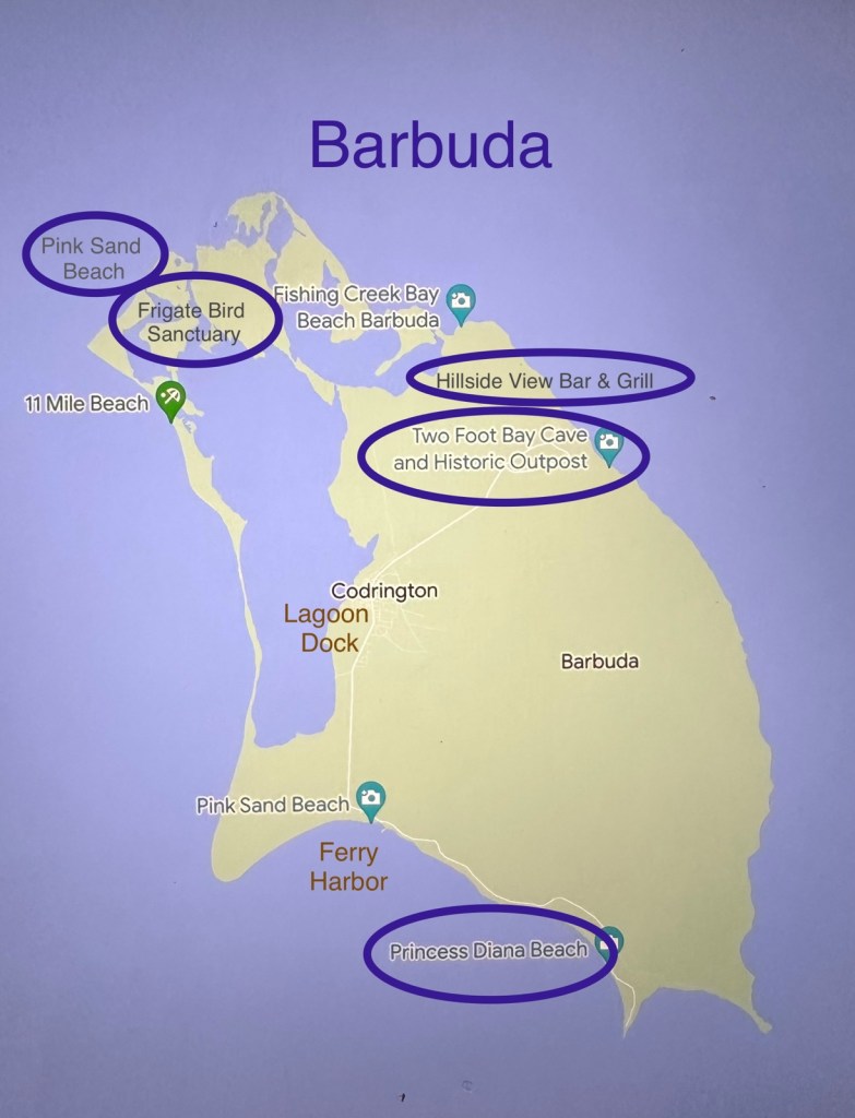 Barbuda is flat! Unlike Antigua with its scenic mountains and rolling hills, this island is low-lying limestone. It’s easy to see how hurricane Irma ravaged the island in 2019. It was a category 5 storm that destroyed about 95% of the island’s structures. Most of the population was evacuated to Antigua.