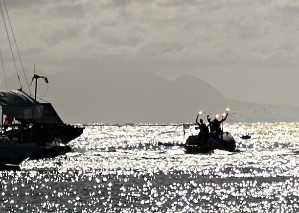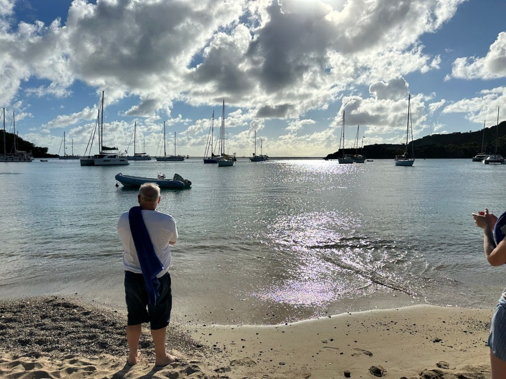 Late afternoon we heard what sounded like cannons. One of the rowboats from the Talisker Whisky Trans-Atlantic Rowboat Competition has finished and is heading for Nelson’s Dockyard. The yachts started blowing horns and everyone on the beach started hootin’ and hollering.