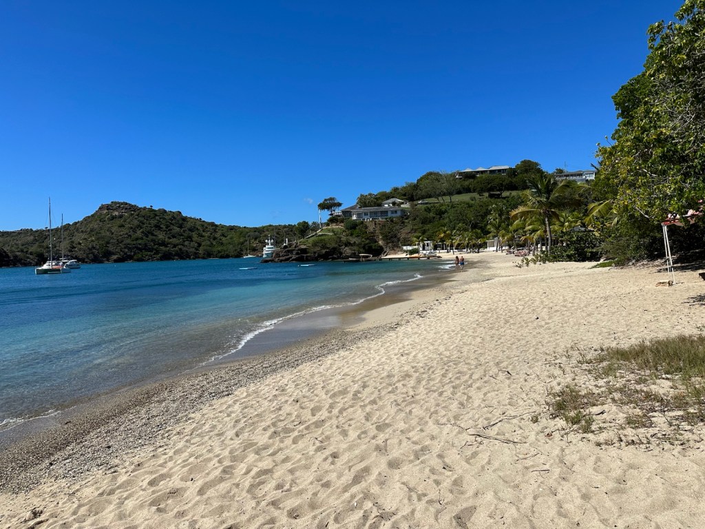 Beach time! Nearby Galleon Beach is calling us! Located on Antigua’s southern coast in English Harbor, Galleon Beach is relatively well protected from rough seas. It is named after the ships that used to moor here – evident by the huge rusting anchor that lies in the shallows in the middle of the beach.