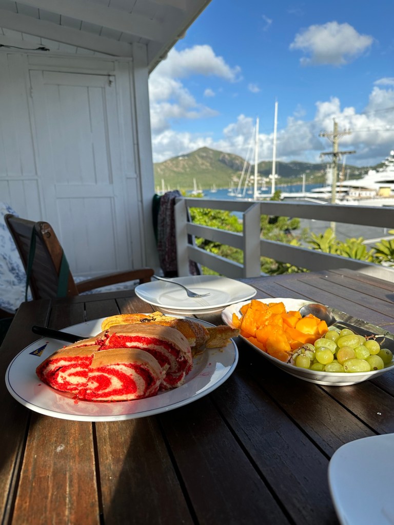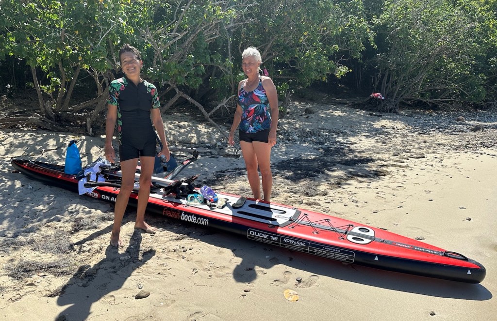 While snorkeling, a sport row boat with two women pulled up to our little beach. We chatted for awhile. It was the coach and nurse for the Swiss Trans-Atlantic rowing team. They were getting ready to welcome their team which would be finishing the 3,000 mile trek this afternoon.