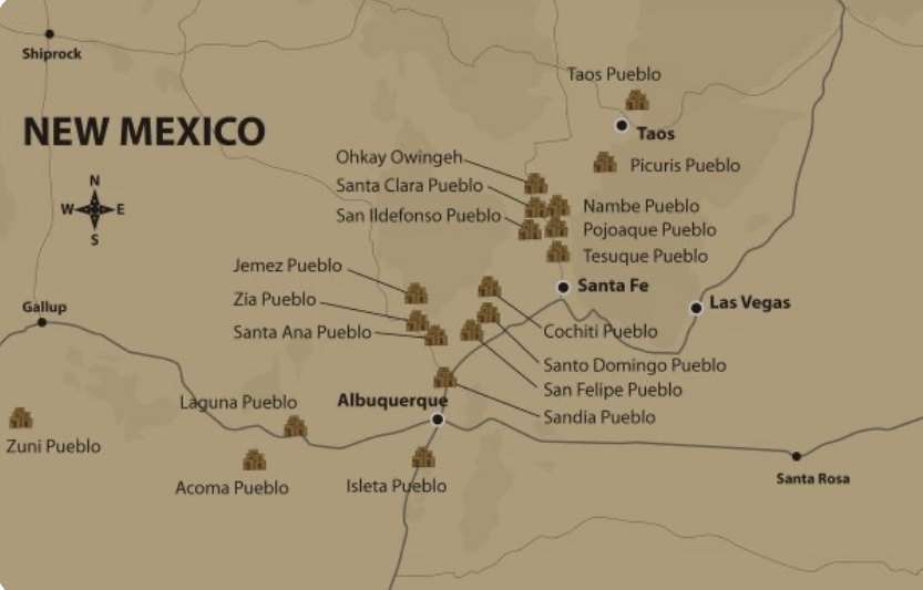 Pueblo is another word for an Indian village. A “reservation” is the same thing except that it is the legal term for land managed by a federally recognized tribe under the US Bureau of Indian Affairs. In New Mexico, most of the reservations are called Pueblos.