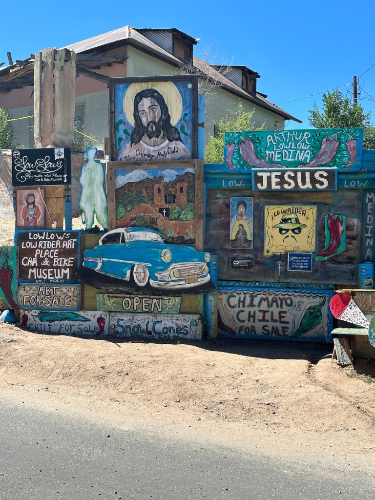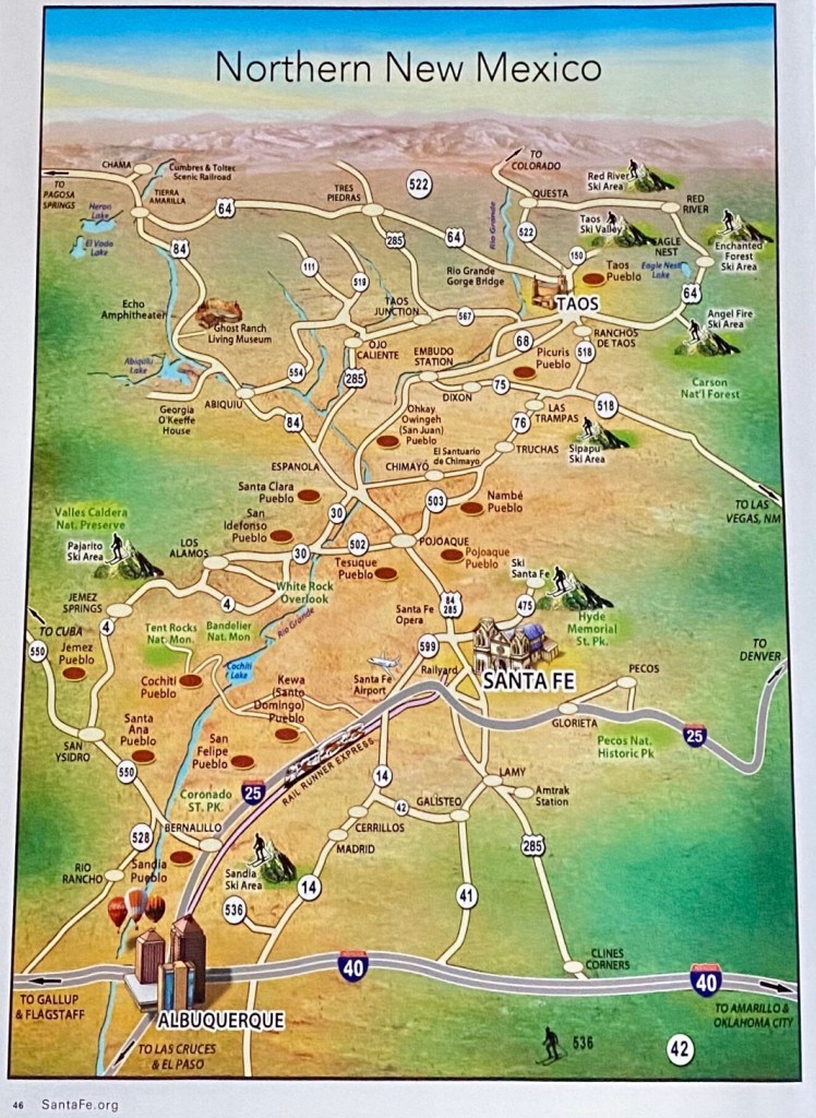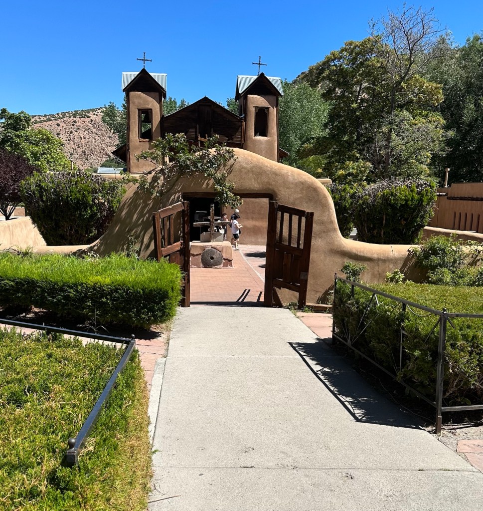 Today’s journey takes us to the spiritual haven of Chimayo on a 56-mile scenic byway called the ‘High Road to Taos.’ It winds through the Sangre de Christo Mountains between Santa Fe and Taos offering alpine views dotted with centuries-old Spanish villages. We returned on the ‘Low Road’ which is a beautiful drive through valleys as it follows along the Rio Grande.