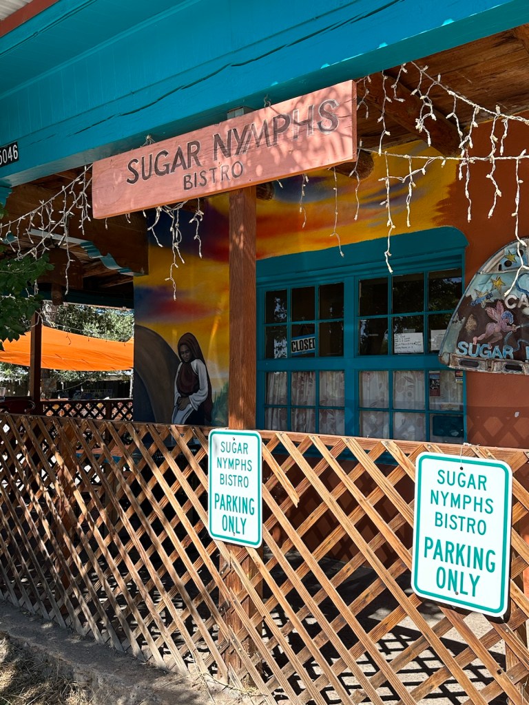 By mid-afternoon, we stumbled onto a roadside restaurant in the sleepy town of Peñasco. The ‘Sugar Nymphs ’ parking lot was full but starting to empty. At the time, we didn’t realize that most restaurants close at 3:00 pm and reopen around 5:00 pm. I think we were the very last of the lunch crowd.