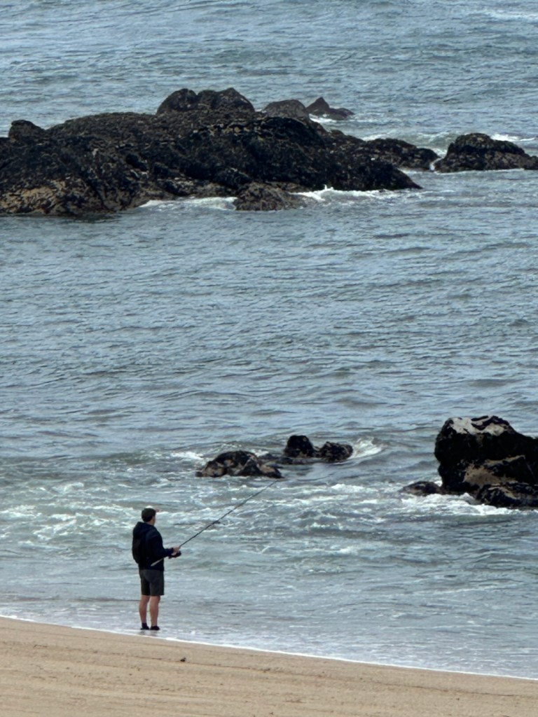 Once we hit the real Atlantic, it was magic: long stretches of sand, crashing waves, sea spray in the air, and the occasional hopeful fisherman casting into the surf.