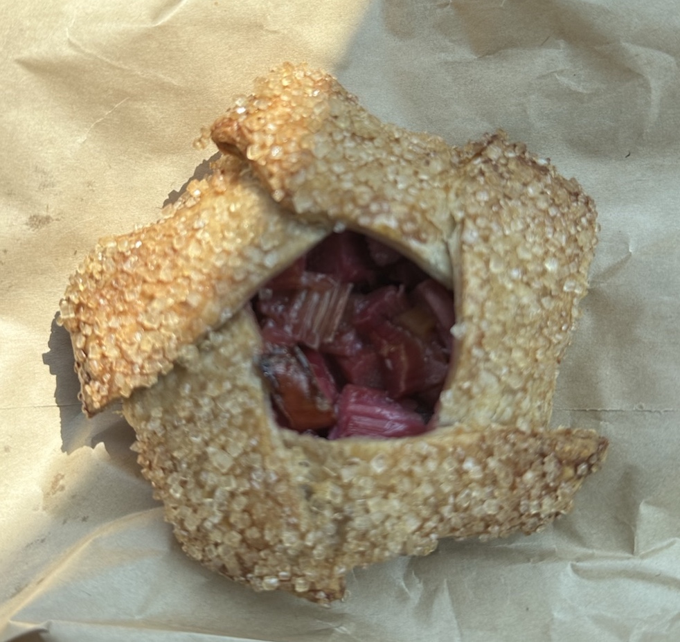 One last treat I couldn’t resist: a rhubarb galette — rustic and golden, with tart-sweet rhubarb nestled in a flaky, buttery pastry and finished with a hint of sugar. It was simple, seasonal, and utterly satisfying.