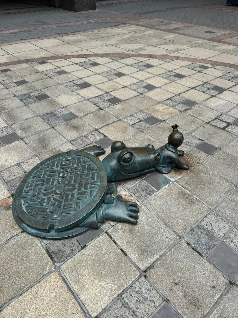 Downtown Brooklyn begins here! These two rotating statues have an interesting background. One is Miss Brooklyn and the other is Miss Manhattan — modern recreations of historic allegorical figures. To me, they resemble the butter-Queen sculptures at the state fair.
