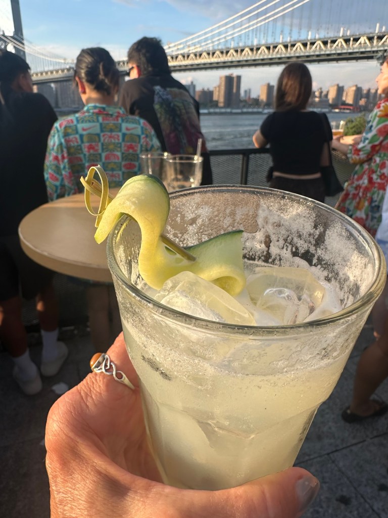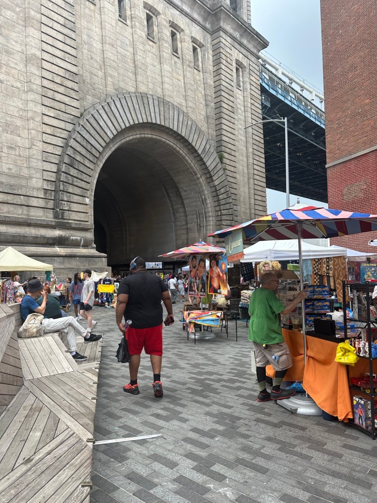 One of my exploratory outings this weekend was to the Brooklyn Flea in DUMBO (Down Under the Manhattan Bridge Overpass) which offers a vibrant mix of vintage treasures, handmade goods and tasty local bites — all set against the dramatic backdrop of the East River. True to its name, it’s tucked right beneath the towering bridge, giving the market an unmistakable urban charm.