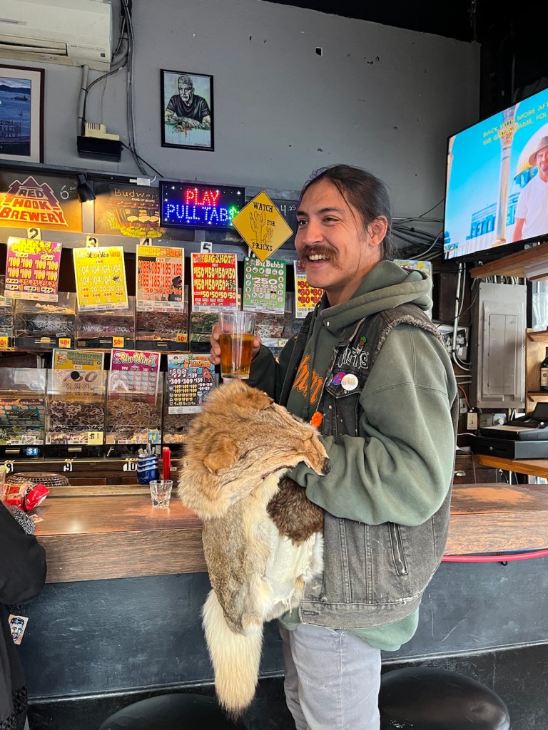 In the middle of Hoonah, we found a carving hut where two men were carving a totem pole. The man we spent the most time talking with told us the Tlingit community didn’t have a written language until very recently. He remembers coming home and showing his mother his written name. To the best of his knowledge his name is written as “Yandus”. All of their stories and history have been passed down orally and through art.